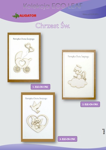 Kolekcja ECO LEAF to szeroki wybór wzorów, stworzonych w formacie 10,5 x 16 cm (21 x 16 cm po rozłożeniu). Podobnie jak w przypadku ECO MADERA i ECO WOOD prezentowana kolekcja opiera się na wykorzystaniu wzorów wycinanych laserowo i późniejszym ręcznym montażu. Kartki pakowane są wraz z brązową kopertą i papierową wkładką z życzeniami w foliowym woreczku.